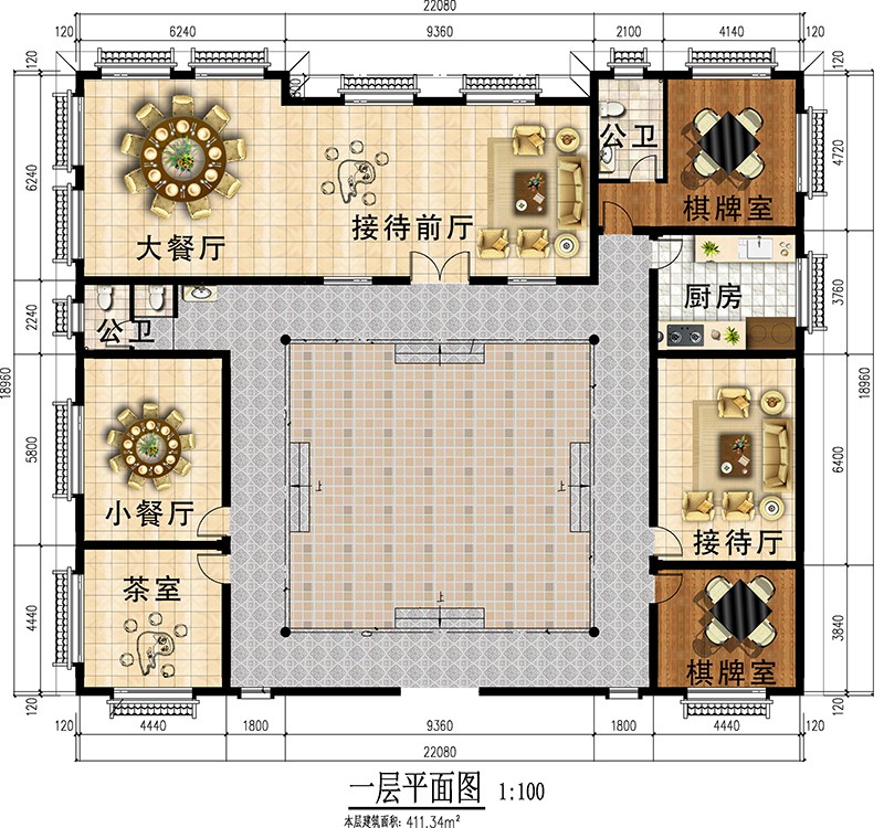 項(xiàng)目名稱:仿徽派二層四合院別墅裝修建筑